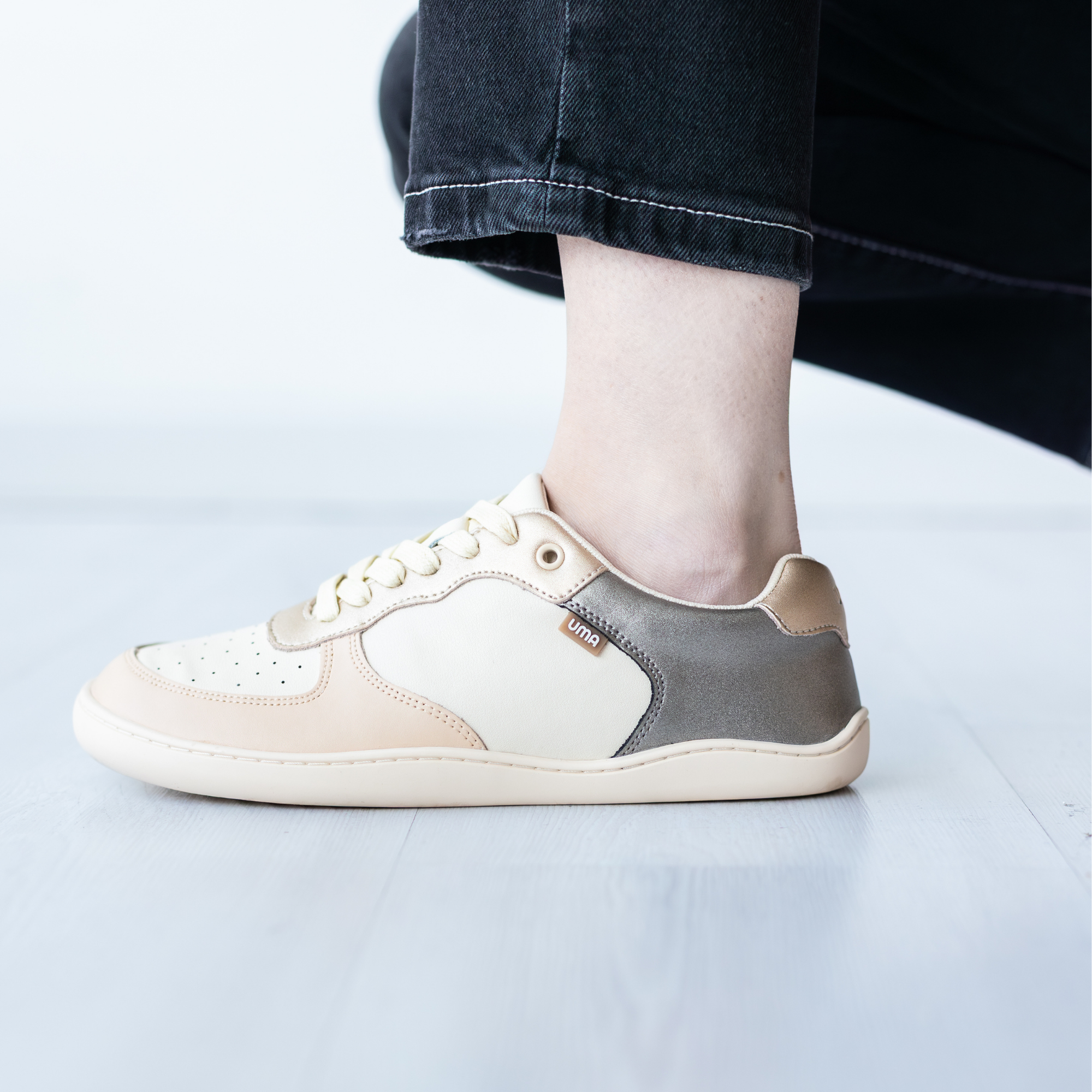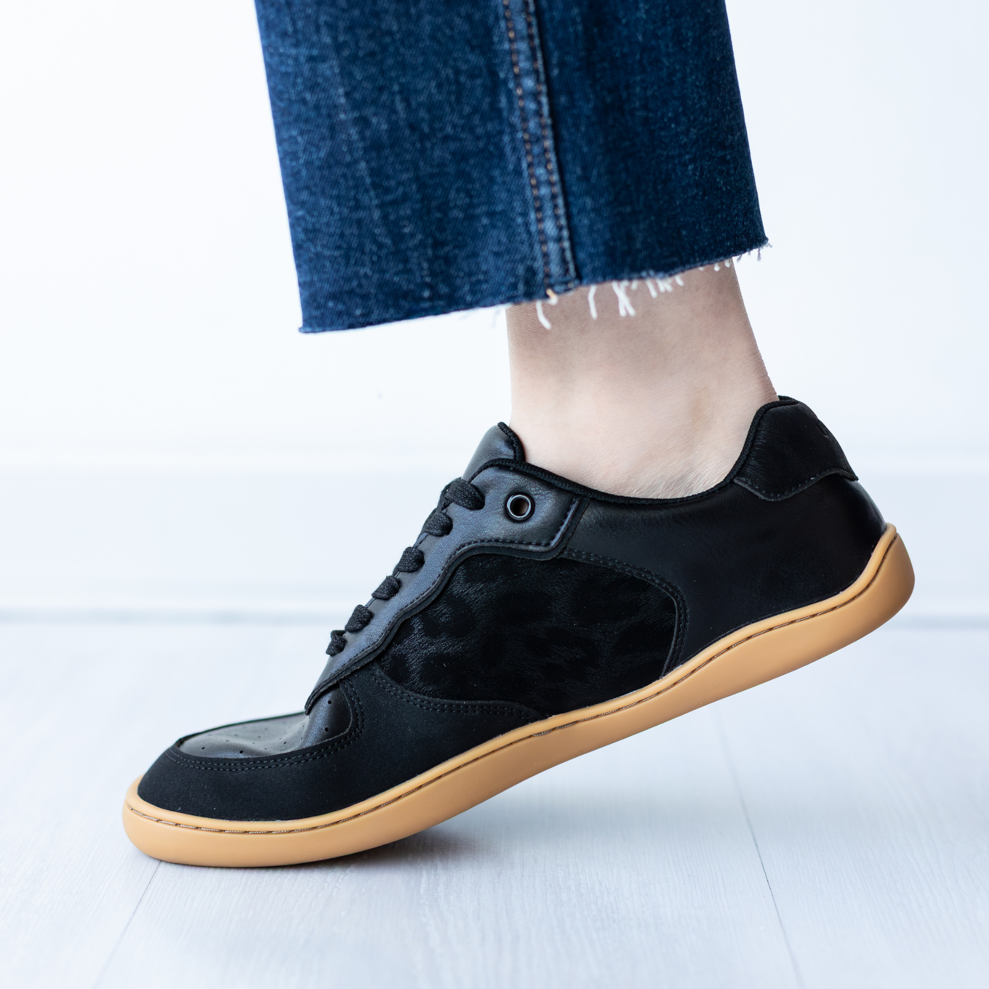 Zapatilla escolar barefoot negra modelo Vintage con doble velcro para kids vista lateral