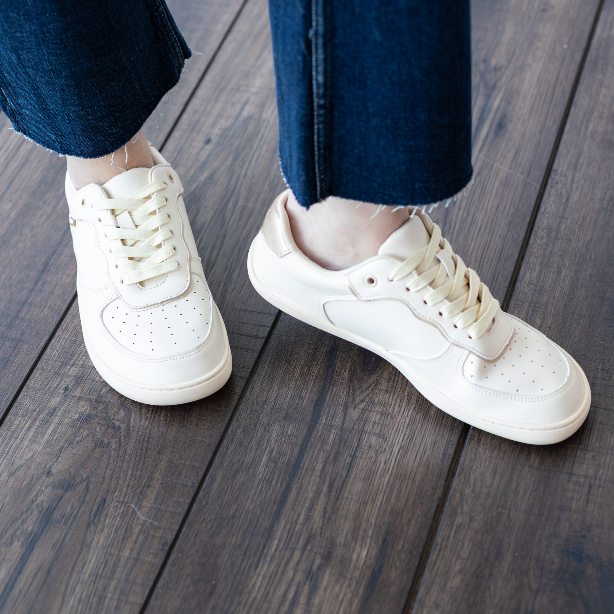 Zapatilla escolar barefoot azul marino modelo Vintage con doble velcro para kids vista lateral